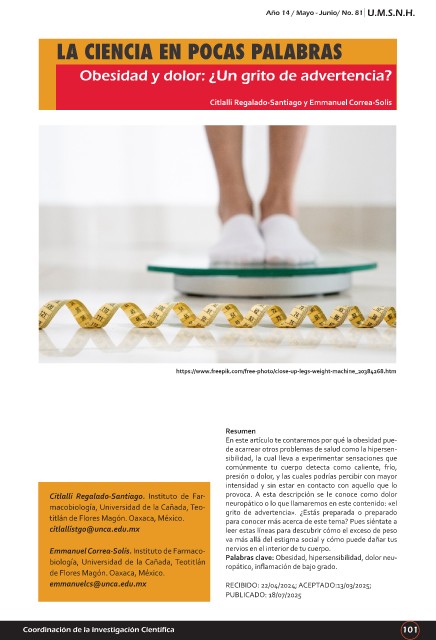 biología, Universidad de la Cañada, Teotitlán Palabras clave: Obesidad, hipersensibilidad, dolor neu-