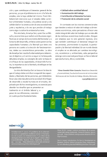 empleo, sino la baja calidad del mismo. Franz Hin- • Contribución al bienestar humano