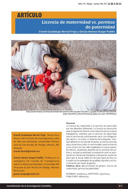 choacana de San Nicolás de Hidalgo. Morelia, maternidad, permiso de paternidad.