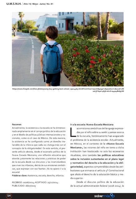 Palabras clave: Asistencia, escuela, derecho, infancia. que alude el derecho de la educación básica y me-