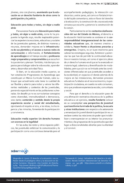 Magendzo A. (2001). El derecho a la educación: una re- Tomasevski K. (2004). Indicadores del derecho a la edu-