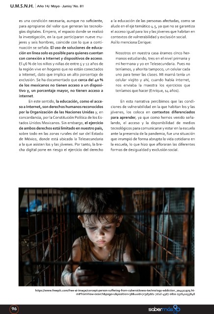 tivo y, un porcentaje mayor, no tienen acceso a teníamos que hacer (Enrique, 14 años).