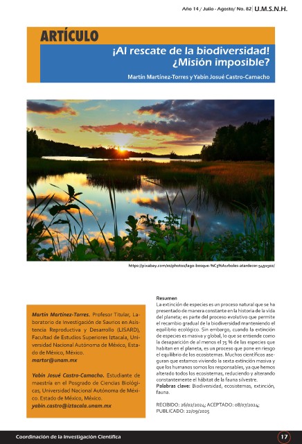 Palabras clave: Biodiversidad, ecosistemas, extinción,