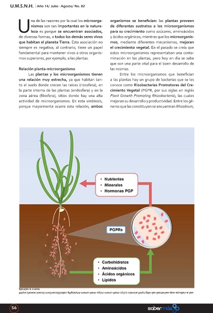 actividad de microorganismos. En esta simbiosis, mejoran su desarrollo y productividad. Entre los gé-