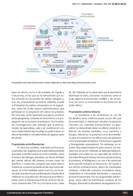 Propiedades medicinales de Quercetina. Fuente: Elaborado con Biorender (https://www.biorender.com/).