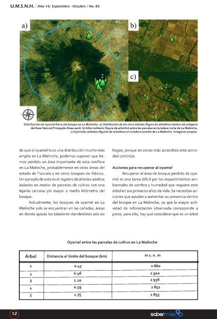 Distribución del oyamel fuera del bosque en La Malinche. a) Distribución de los cinco árboles (figura de arbolitos) dentro del polígono