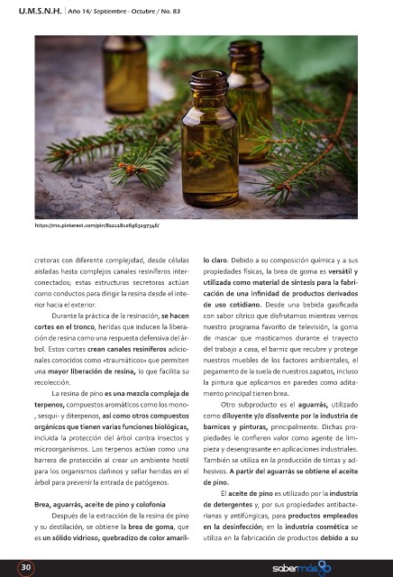 Brea, aguarrás, aceite de pino y colofonia de detergentes y, por sus propiedades antibacte-