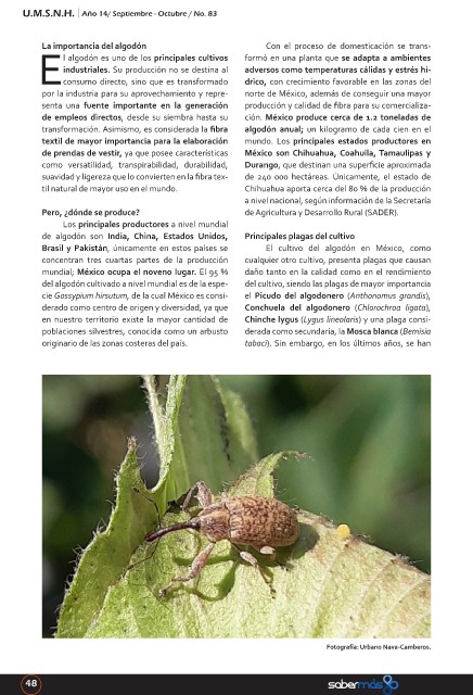 cie Gossypium hirsutum, de la cual México es consi- el Picudo del algodonero (Anthonomus grandis),