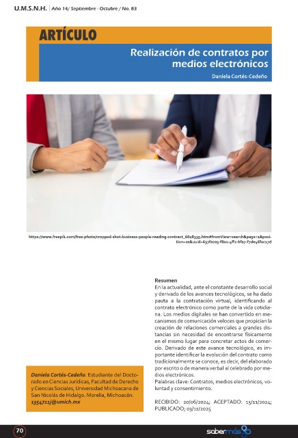 rado en Ciencias Jurídicas, Facultad de Derecho Palabras clave: Contratos, medios electrónicos, vo-