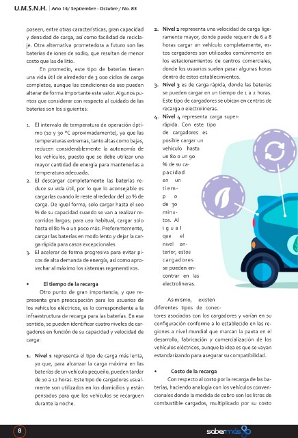 poseen, entre otras características, gran capacidad 2. Nivel 2 representa una velocidad de carga lige-