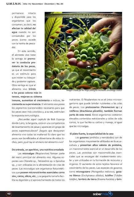 los peces sean más coloridos y, a su vez, estimulan rotíferos (Brachionus plicatilis), también forman