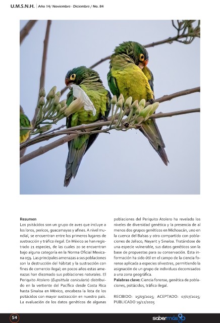 psitácidos con mayor sustracción en nuestro país. RECIBIDO: 15/03/2025; ACEPTADO: 07/07/2025;