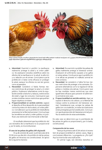 1. Idoneidad: Examinó si prohibir la marihuana 1. Idoneidad: Se examinó si prohibir las peleas de