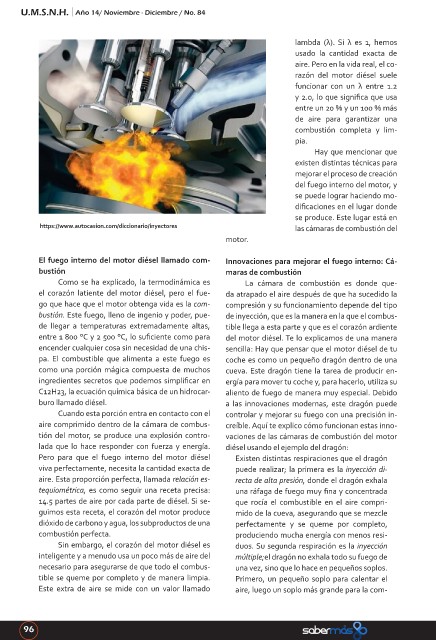 El fuego interno del motor diésel llamado com- Innovaciones para mejorar el fuego interno: Cá-