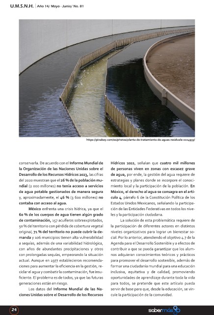 de agua potable gestionados de manera segura México, el derecho al agua se consagra en el artí-