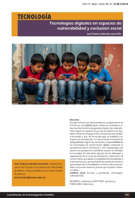 José Federico Benítez-Jaramillo. Instituto Su- que emanan de la virtualidad en contextos de vulnerabi-