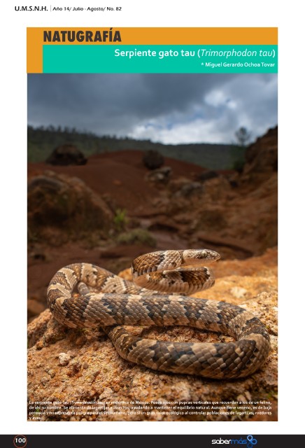 La serpiente gato tau (Trimorphodon tau) es endémica de México. Posee ojos con pupilas verticales que recuerdan a los de un felino,