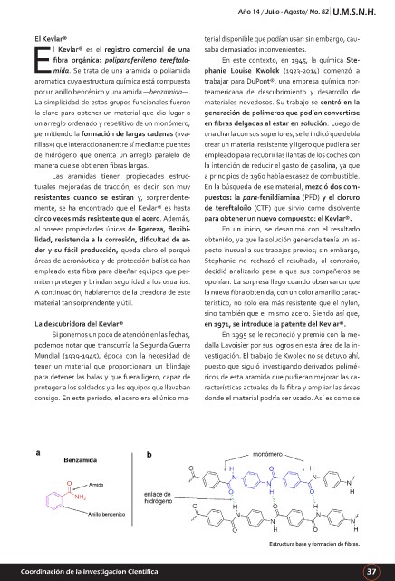 fibra orgánica: poliparafenileno tereftala- En este contexto, en 1945, la química Ste-