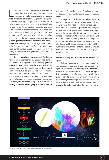 la química de la combustión. Lavoisier demostró ritas luminosas contienen peróxido de hidrógeno