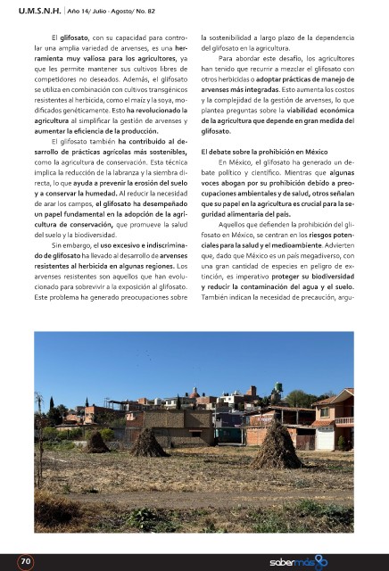 como la agricultura de conservación. Esta técnica En México, el glifosato ha generado un de-