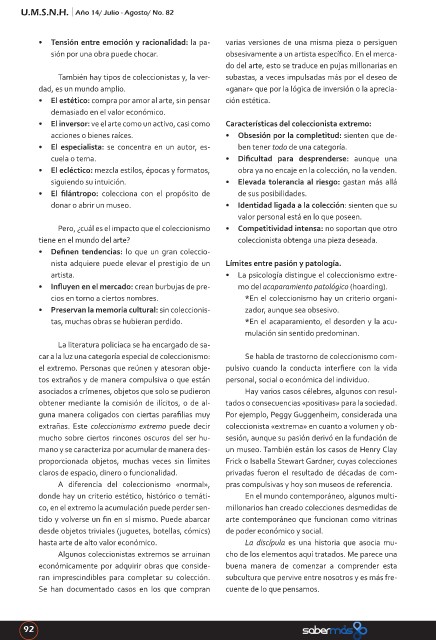 extrañas. Este coleccionismo extremo puede decir coleccionista «extrema» en cuanto a volumen y ob-