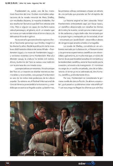 Frankenstein es, quizá, uno de los mons- las primeras críticas comienzan a trazar un retrato