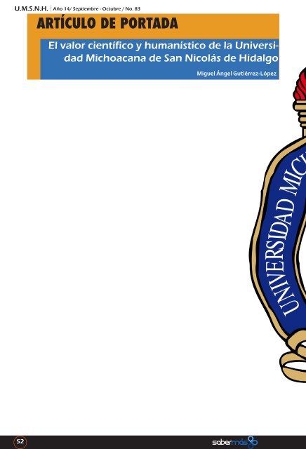 U.M.S.N.H. Año 14/ Septiembre - Octubre / No. 83 ARTÍCULO DE PORTADA El valor científico y humanístico de la Universi- dad Michoacana de San Nicolás de Hidalgo Miguel Ángel Gutiérrez-López 52