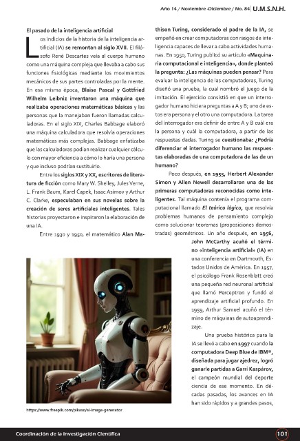 os indicios de la historia de la inteligencia ar- empeñó en crear computadoras con rasgos de inte-