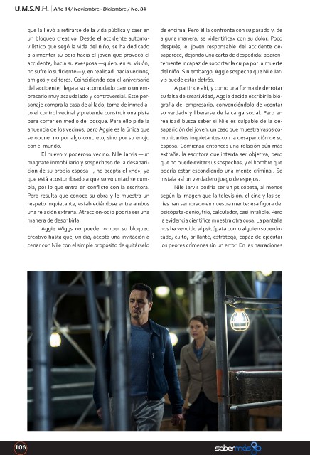 pla, por lo que entra en conflicto con la escritora. Nile Jarvis podría ser un psicópata, al menos
