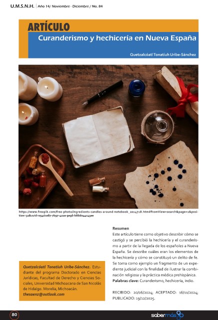 ciales, Universidad Michoacana de San Nicolás Palabras clave: Curanderismo, hechicería, indio.