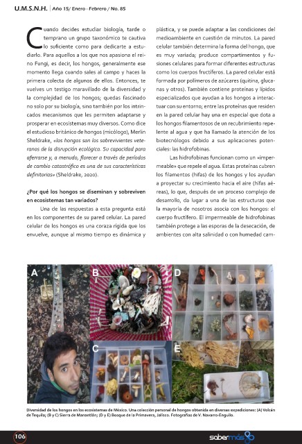 Diversidad de los hongos en los ecosistemas de México. Una colección personal de hongos obtenida en diversas expediciones: (A) Volcán