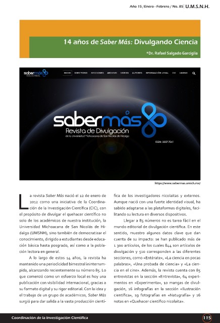 a revista Saber Más nació el 12 de enero de fica de los investigadores nicolaitas y externos.