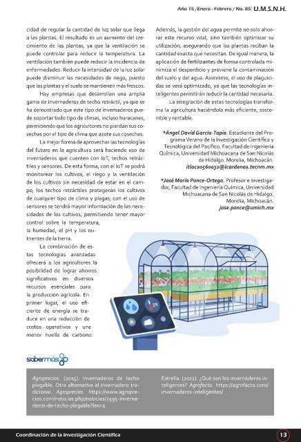invernaderos que cuenten con IoT, techos retrác- de Hidalgo. Morelia, Michoacán.