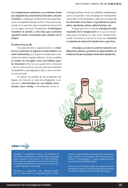 Astudillo F. y Escalante A. (2022). Los beneficios de Pulque, a traditional Mexican alcoholic fermented beve-