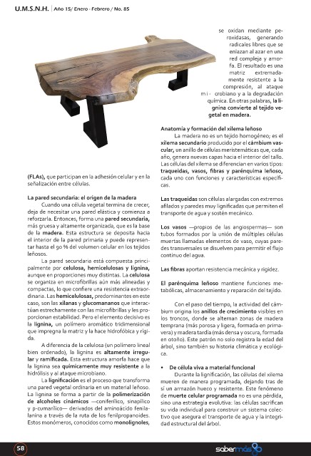 de la madera. Esta estructura se deposita hacia tubos formados por la unión de múltiples células
