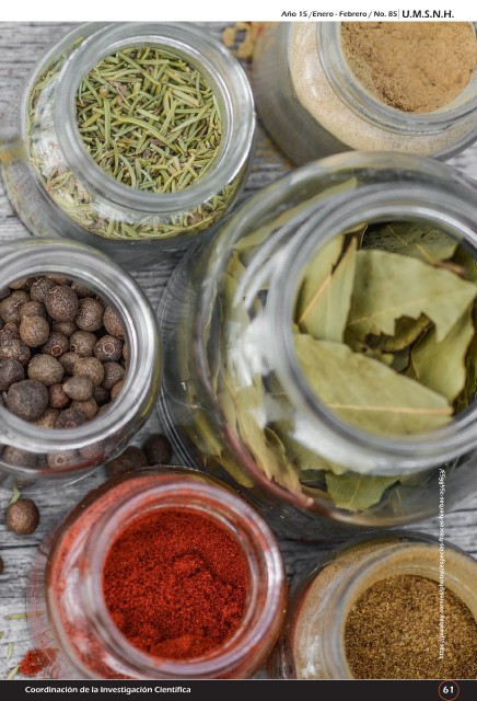 Año 15 /Enero - Febrero / No. 85 U.M.S.N.H. https://pixabay.com/es/photos/especias-frascos-hierbas-2548653/ Coordinación de la Investigación Científica 61