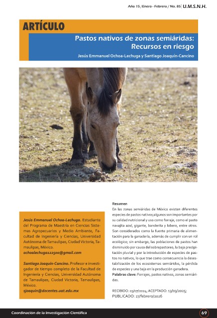 Ingeniería y Ciencias, Universidad Autónoma Palabras clave: Forrajes, pastos nativos, zonas semiári-