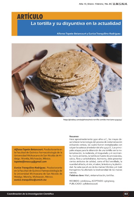 Año 15 /Enero - Febrero / No. 85 U.M.S.N.H.